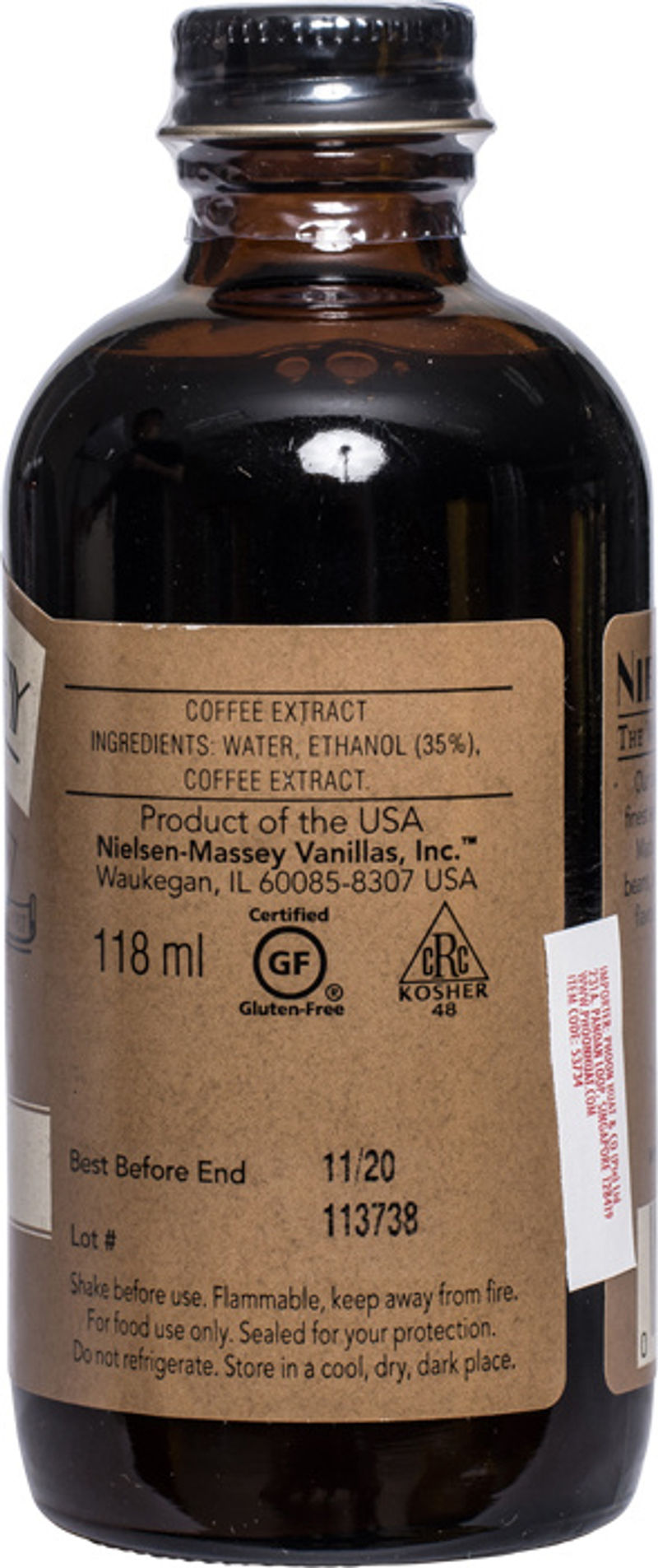 Envelop your senses in the rich flavour profile of COFFEE EXTRACT 2OZ by Nielsen-Massey Vanillas. Crafted with the finest ingredients and meticulous attention to detail, the extract is sourced from top quality beans originating from Madagascar, Mexico and Tahiti. This GMO-free, gluten-free and allergen-free product is not only all-natural and kosher, but also available in organic and Fairtrade Certified options. Enjoy the robust coffee essence that's perfect for a variety of cooking and baking applications, straight from the United States.