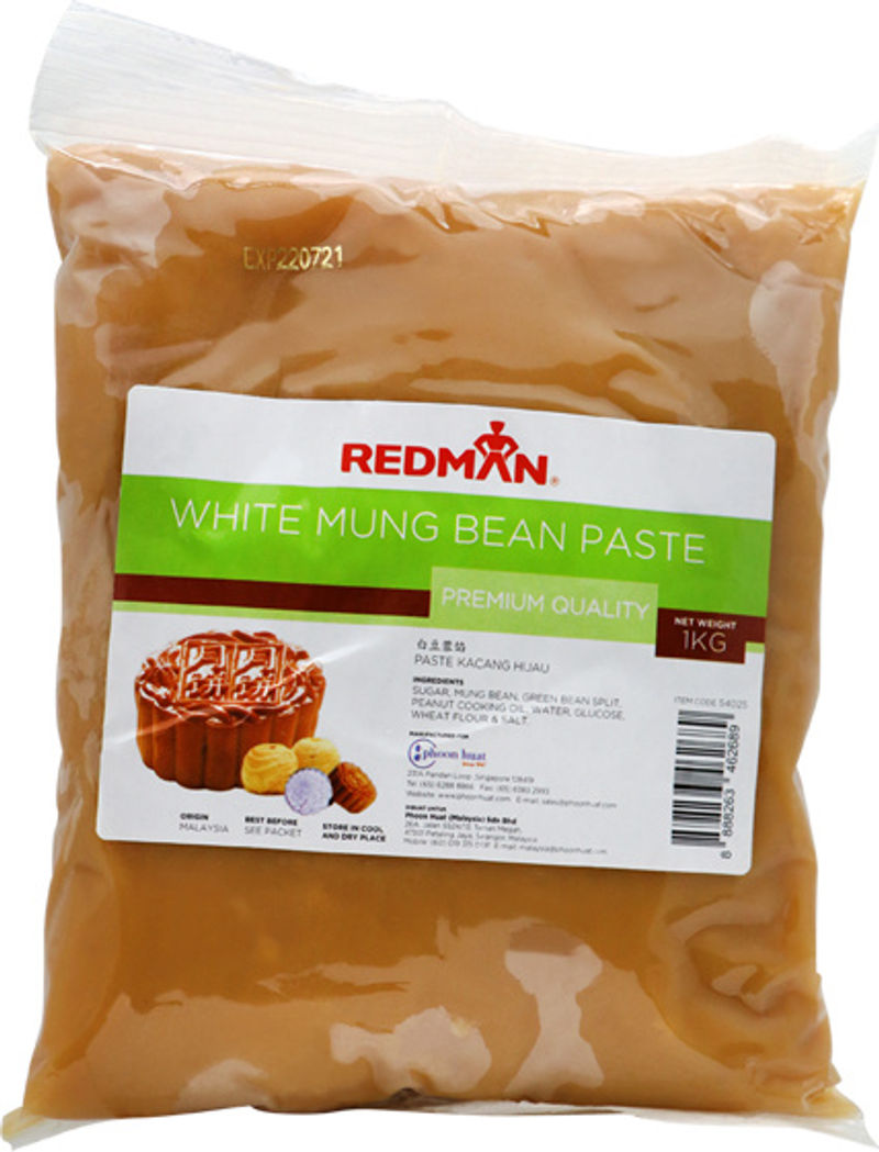 Indulge in the sweet and creamy taste of Redman's MOONCAKE PASTE WHITE MUNG BEAN. This 1kg paste is made from quality ingredients including sugar, mung bean, green bean split, wheat flour, peanut cooking oil, glucose, and a touch of salt. It's a culinary delight hailing from Malaysia and is perfect for creating traditional Asian desserts or adding a unique touch to your baking recipes. With a smooth texture and the authentic flavor of white mung bean, this product ensures a quality and tasty experience.