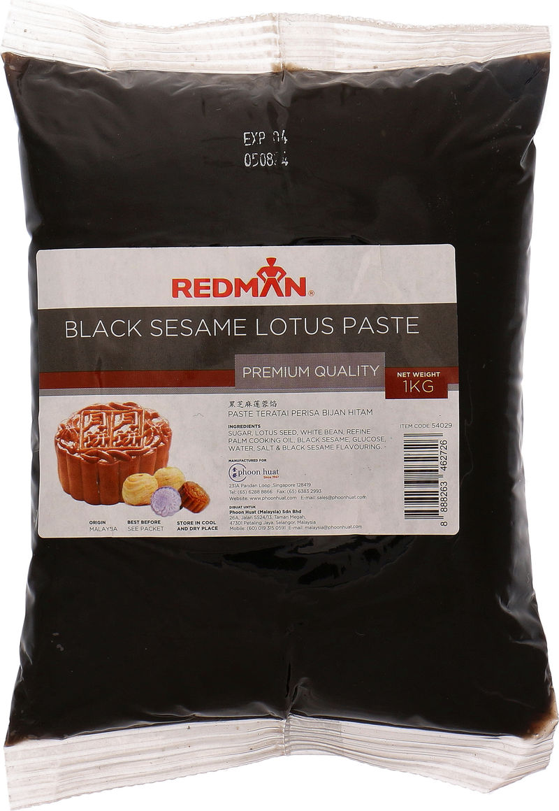 Indulge in the exquisite taste of our Redman Sesame Lotus Filling. Made in Malaysia, this 1KG pack of mooncake paste contains the unique blend of sesame and lotus paste, offering an irresistibly fragrant and sweet flavor. It's crafted with high-quality ingredients including sugar, lotus seed, white bean, refined cooking palm oil, black sesame, glucose, water, salt, and black sesame flavoring. This product is a must-have for anyone who appreciates traditional Asian desserts.