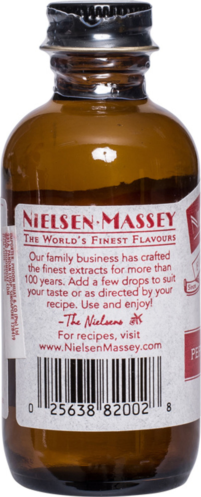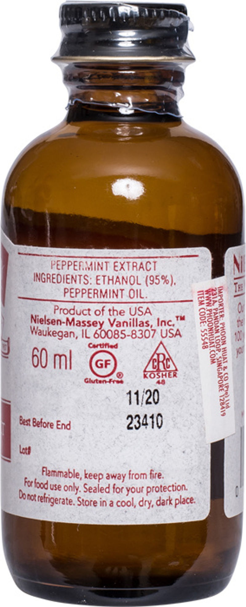 Our PEPPERMINT EXTRACT 2OZ is a top-quality product from the renowned brand Nielsen-Massey Vanillas, who has been crafting the world’s finest pure and natural vanilla products since 1907. Sourced from the world's best regions for vanilla growing, our extract also upholds the same standard of quality ingredients and processing detail. This unique botanical extractive is slowly infused into an alcohol base, a flavor carrier required by the FDA. It is all-natural, kosher, GMO-free, gluten-free, and allergen-free. Organic and Fairtrade Certified options are also available. This product is proudly made in the United States.