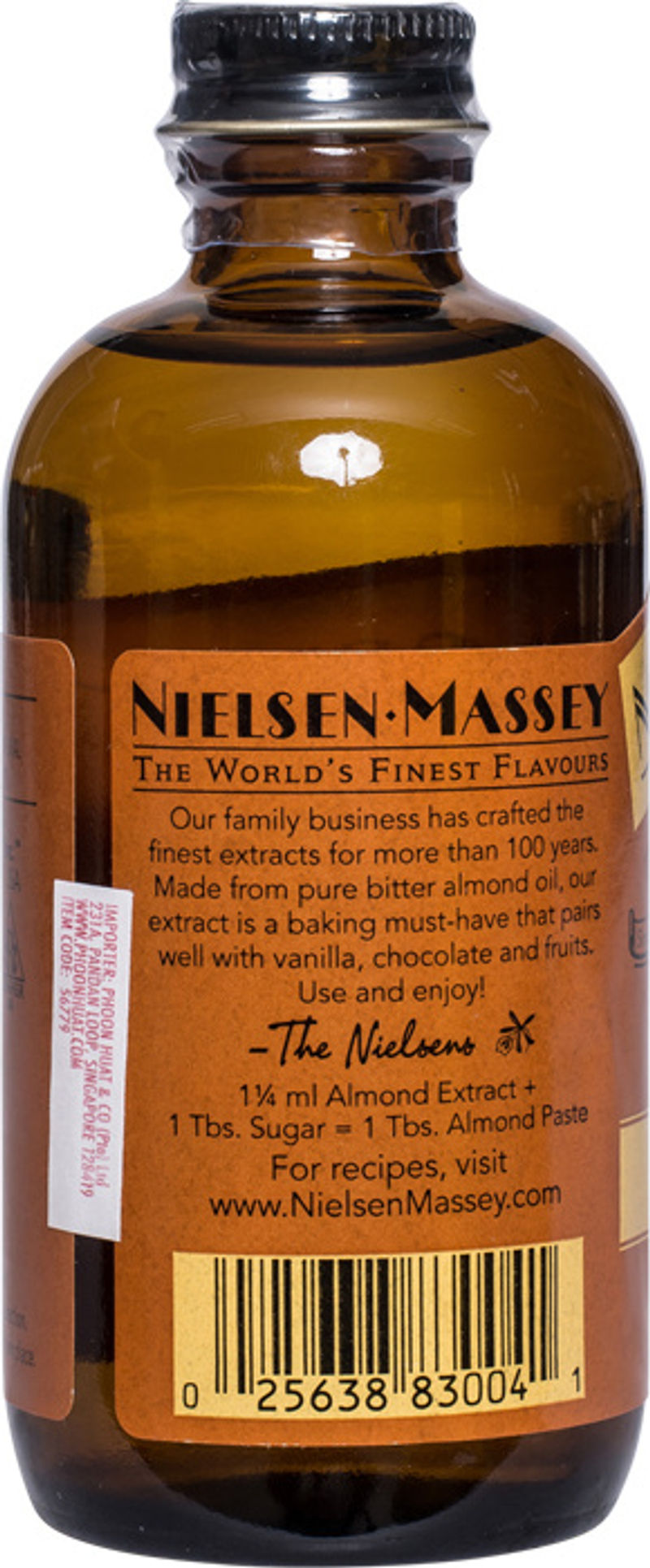 Our ALMOND EXTRACT 4OZ is an all-natural, high-quality flavor extractor crafted by Nielsen-Massey, a trusted name in the world of pure and natural vanilla products since 1907. This almond extract exudes a rich, sweet flavor that promises to enhance your culinary creations. Our meticulous process involves infusing unique botanical extractives into an alcohol base, a flavor carrier required by the FDA. This all-natural, kosher, GMO-free, gluten-free and allergen-free product is proudly made in the United States, ensuring its premium quality.