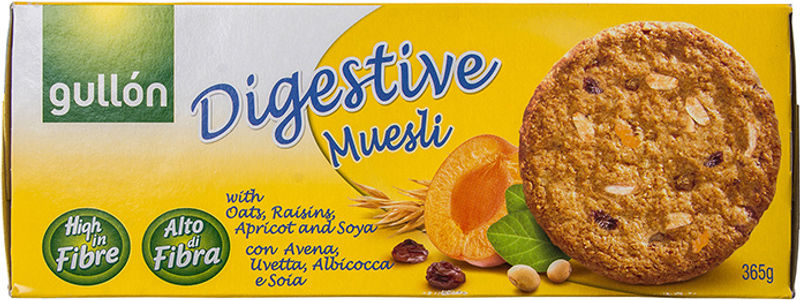 Dive into a world of fibrous delight with our Digestive Muesli Biscuit 365G. Baked to perfection in the sun-drenched landscapes of Spain, this biscuit is an exquisite blend of whole wheat flour, crunchy oat flakes, juicy raisins, and a hint of succulent apricot and peach. Our biscuit also boasts pieces of caramelized soya, a unique touch that brings a surprising twist to every bite. Vegetarian-friendly and potentially suitable for lactose-intolerant individuals, it's a wonderful snack that combines taste, texture, and nutrition.