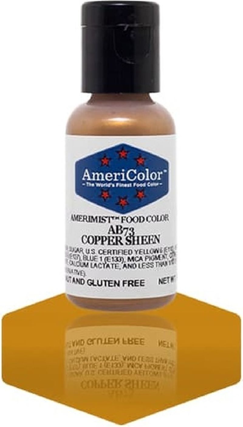 The AIRBRUSH COLOR COPPER SHEEN 0.65OZ is a high-quality edible colorant designed to give your culinary creations a beautiful and unique copper sheen finish. This product is perfect for any baking or cooking project requiring an artistic touch, from cupcakes to sugar crafts. While the ingredients are not listed, this product is typically made with color pigments that are safe for consumption and easy to use. The country of origin is not specified, but the product meets all food safety standards.