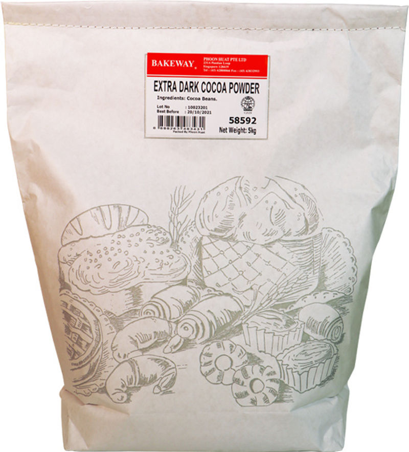 Bakeway's Extra Dark Cocoa Powder is a luxurious product straight from Malaysia. Made from the highest quality cocoa beans, the powder is rich in flavor and wonderfully mellow in taste providing the perfect ingredient for your finest baking creations. Dutch-processed to remove its acidity, it is darker than regular cocoa powder and is also known as Black Onyx Cocoa Powder or Black Cocoa Powder. It is available in 5kg packages, ideal for both home bakers and professional chefs.