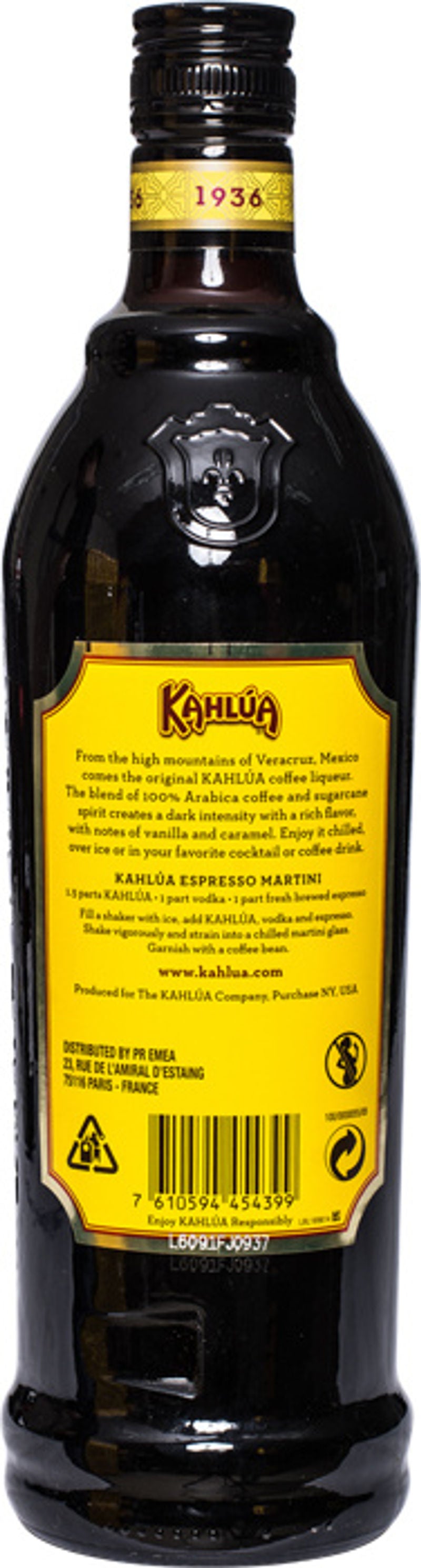 Kahlúa Original Coffee Liqueur is the hero ingredient in many cult cocktails and drinks, to name a few: White Russian, Espresso Martini, Mind Eraser. It will turn the average evening into a fun and different social highlight. Tasting Note: Its deep brown color is attractive and deep. Kahlúa Original Coffee Liqueur offers enticing scents of bittersweet coffee bean and roasted chestnut and multilayered flavors of black coffee and sweet butter. Country of Origin: Singapore