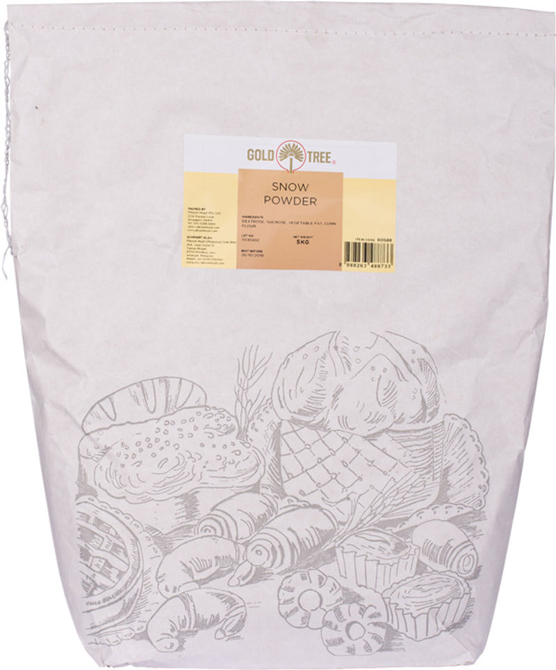 Goldtree's SNOW POWDER 5KG is a premium-quality, halal-certified product straight from Singapore. This unique sugar, also known as non-melting powdered sugar or dusting sugar, is less sweet than regular sugar and lends an exquisite finishing touch to baked goods. Infused with the finest quality ingredients including dextrose, sugar, wheat starch, vegetable fat, and cornstarch, this snow powder is perfect for products that are slightly moist and need a hint of sweetness without overpowering the main flavors.