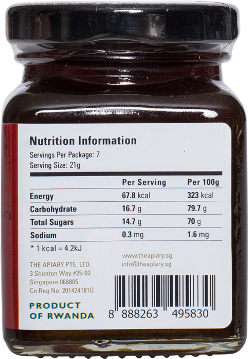Introducing our FOREST HONEY 150G, a natural, unheated, and unprocessed sweet delight from the pristine forests of Singapore. This EU certified honey embodies a unique taste, akin to an aged whiskey, and pairs perfectly with acidic fruits like mango, kiwi, strawberry, pineapple. Offering you the pure, untouched goodness of nature, our honey is enriched with beneficial enzymes and serves as an excellent addition to your flavorful sauces or marinades.