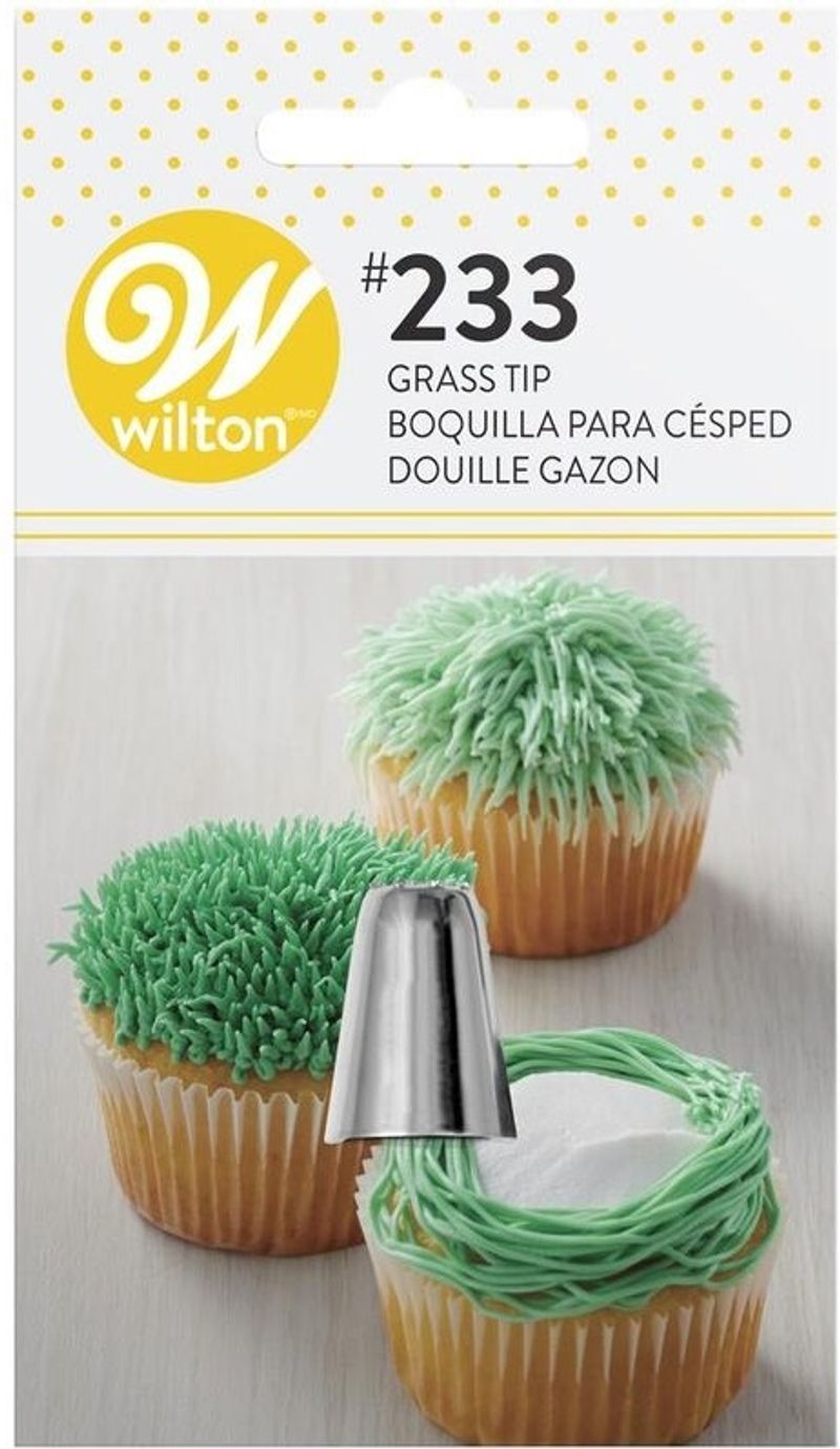 Simply fill your piping bag with icing, attach the Carded Piping Tip Grass #233, and squeeze gently to create stunning grass-like designs.