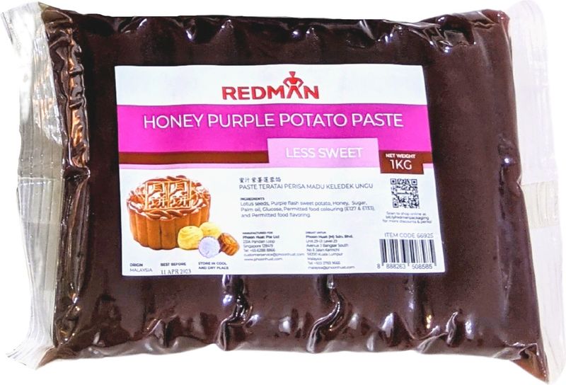 Embrace the taste of the traditional Asian dessert with our Redman MOONCAKE PASTE-LESS SWEET HONEY PURPLE POTATO 1KG. This rich, paste-like filling is carefully crafted in Malaysia using premium quality honey and purple potatoes. A healthier alternative to regular sweet fillings, our honey purple potato lotus filling is less sweet, making it a perfect ingredient for those who prefer a mild sweetness in their desserts. The unique fusion of honey and purple potato brings a delightful and distinct taste, creating an unforgettable gastronomic experience.