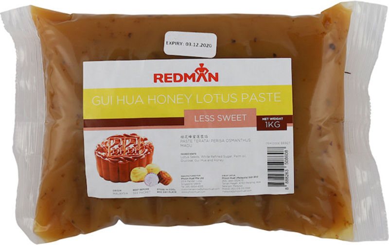 Savor the unique taste of our MOONCAKE PASTE HONEY GUI HUA LESS SWEET 1KG, made by the popular brand, Redman. This delectable paste, originating in Malaysia, strikes the perfect balance between the delicate sweetness of honey and the fragrant gui hua. Made with high-quality lotus seeds, refined sugar, palm oil, glucose, gui hua and honey, this less sweet variant is perfect for those who prefer a subtler, more nuanced flavor profile.