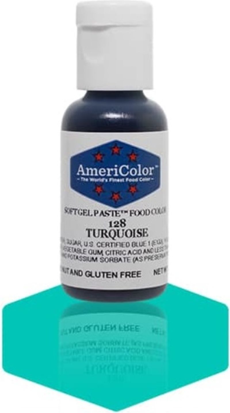 The SOFTGEL COLOR PASTE TURQUOISE 0.75OZ is a vibrant and high-quality color paste that can give your confections a stunning look. It boasts a brilliant turquoise shade that's perfect for adding a splash of color to your baking creations. This product is easy to use and ensures a smooth, uniform color. Although the ingredients are not specified, it's a top-notch product that can elevate the aesthetics of your baked goods.