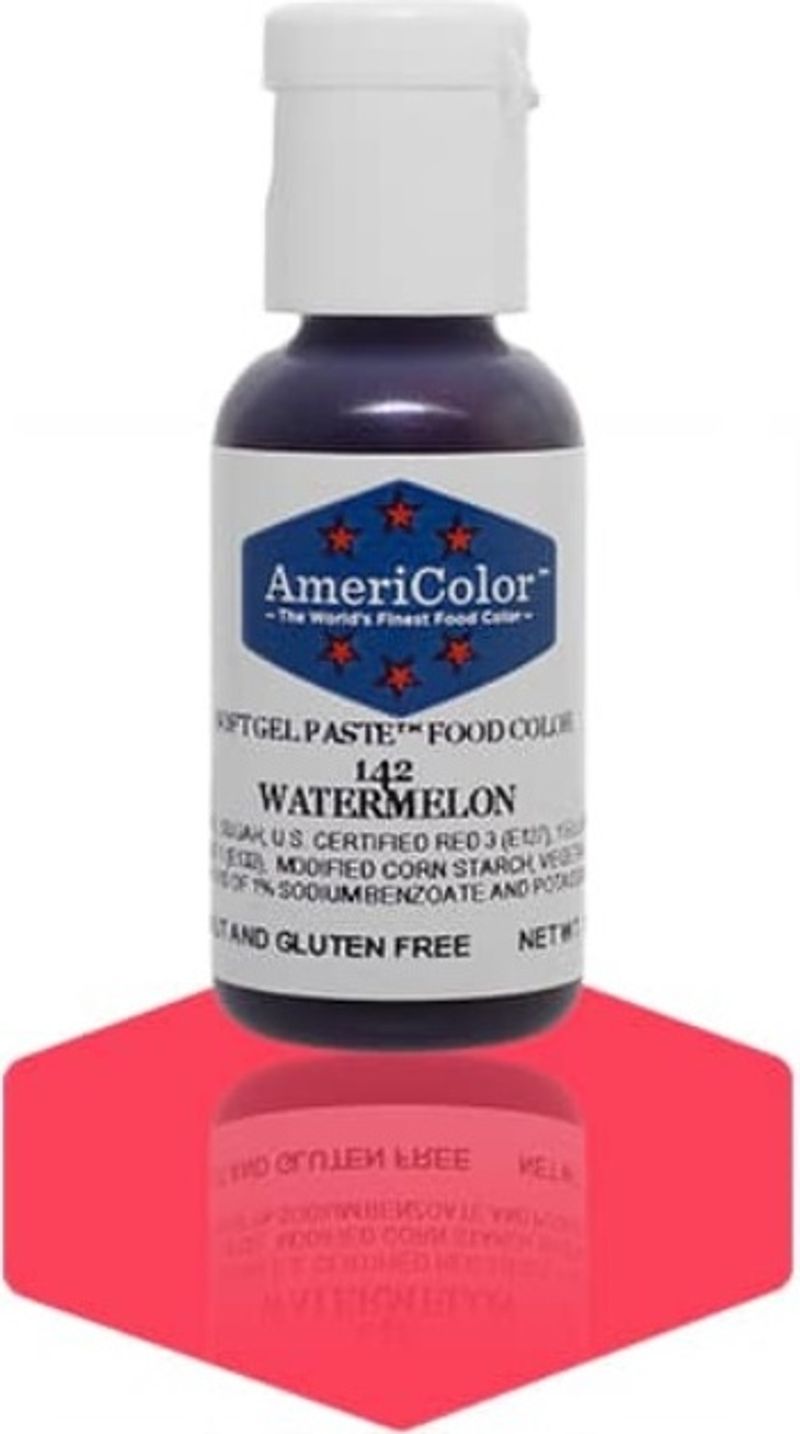 Brighten your culinary creations with our SOFTGEL COLOR PASTE WATERMELON 0.75OZ. This vivid, high-quality food coloring brings a splash of stunning watermelon color to your confectionery works, transforming them into visually appealing masterpieces. Whether you're baking cupcakes, decorating cookies, or crafting confectionery, this easy-to-use paste delivers consistent color results that can take your food presentation to the next level.