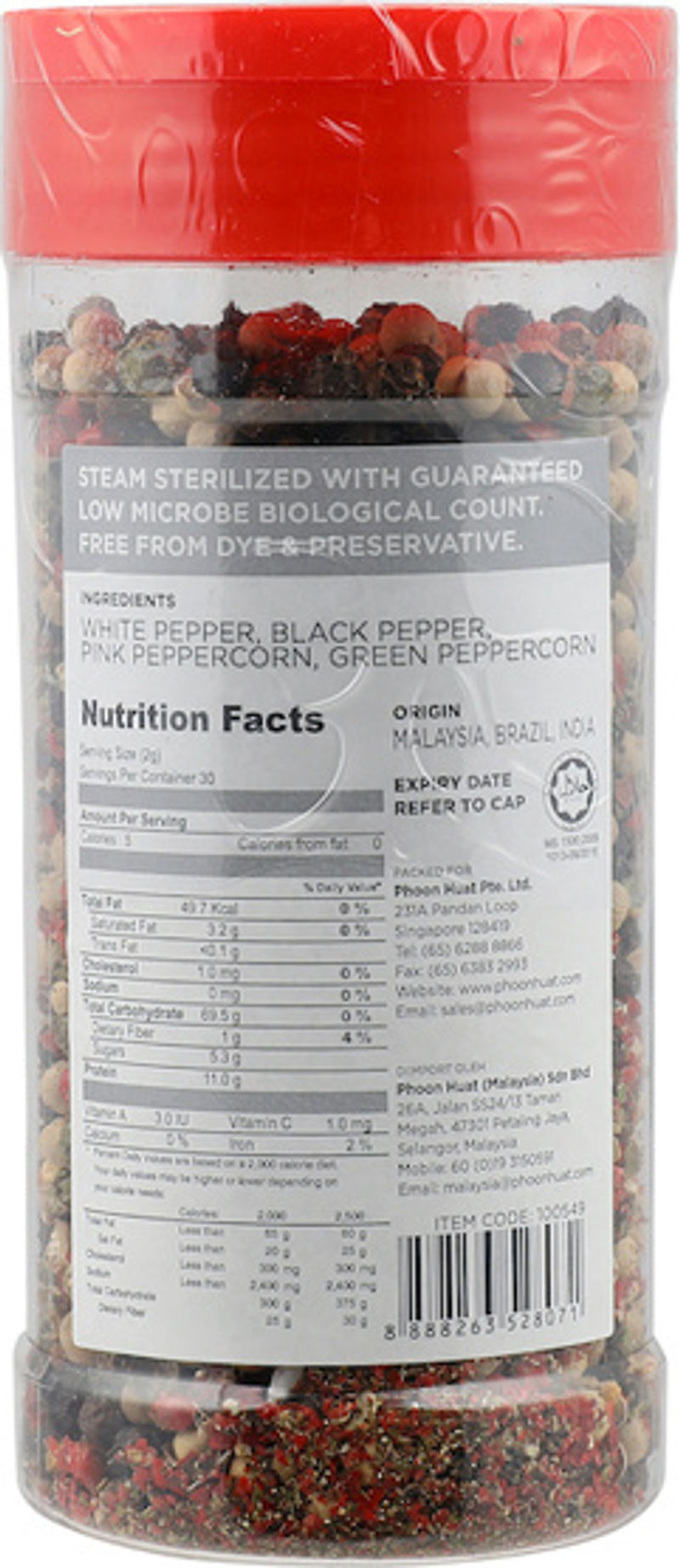 Our MIXED PEPPER WHOLE 90G is a vibrant blend of white, black, pink and green peppercorns. Carefully selected and sourced from top-quality producers, our mixed pepper provides a balanced heat and unique depth of flavour to any dish. This versatile ingredient not only adds a full-bodied spiciness to your meals but also gives them an appealing, colourful appearance.