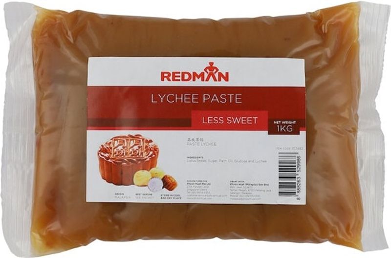 Delve into the rich, exotic flavor of Redman's Less Sweet Lychee Lotus Filling, a specialty paste crafted in Malaysia. Made with a unique blend of lotus seed, sugar, palm oil, glucose, and the distinctive taste of lychee, this 1kg paste is designed to be less sweet, making it a perfect choice for those who prefer a subtler sweetness in their treats. Its paste-like texture is designed to blend smoothly into your mooncake recipes.