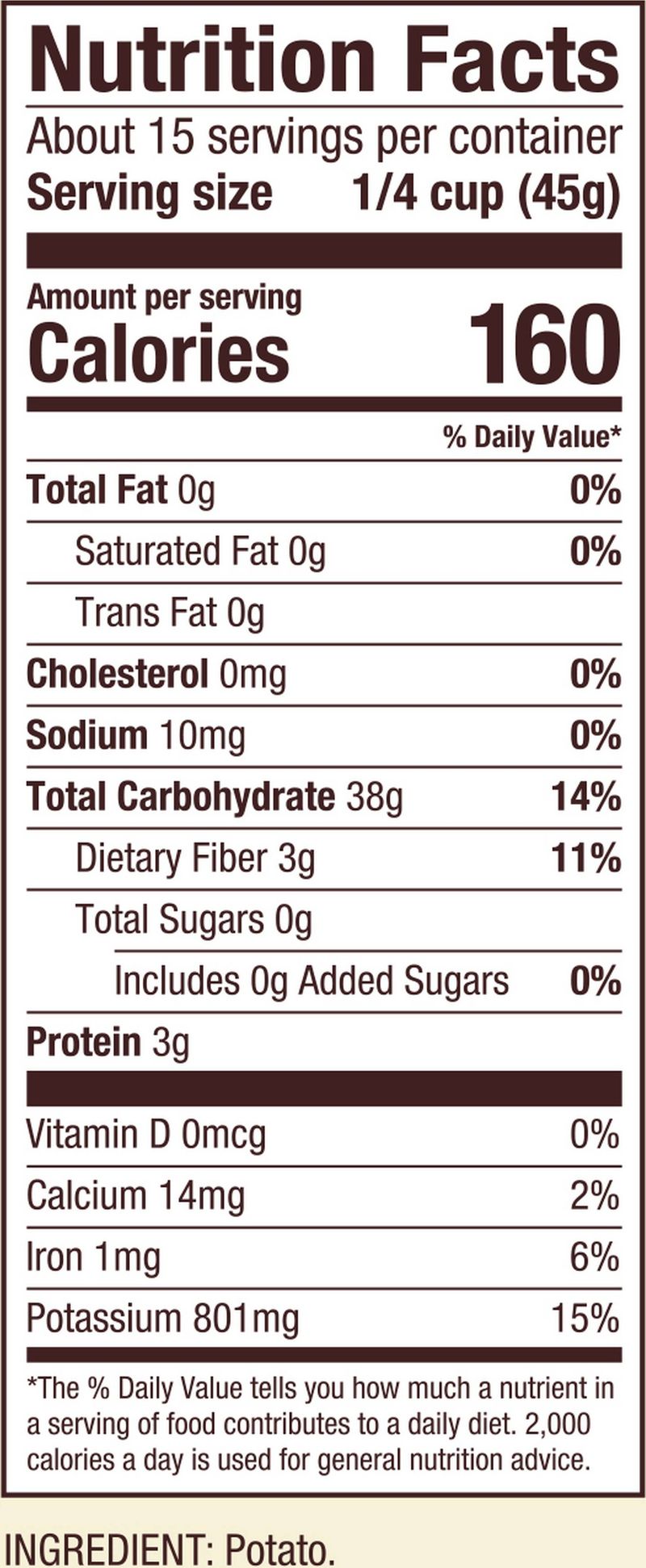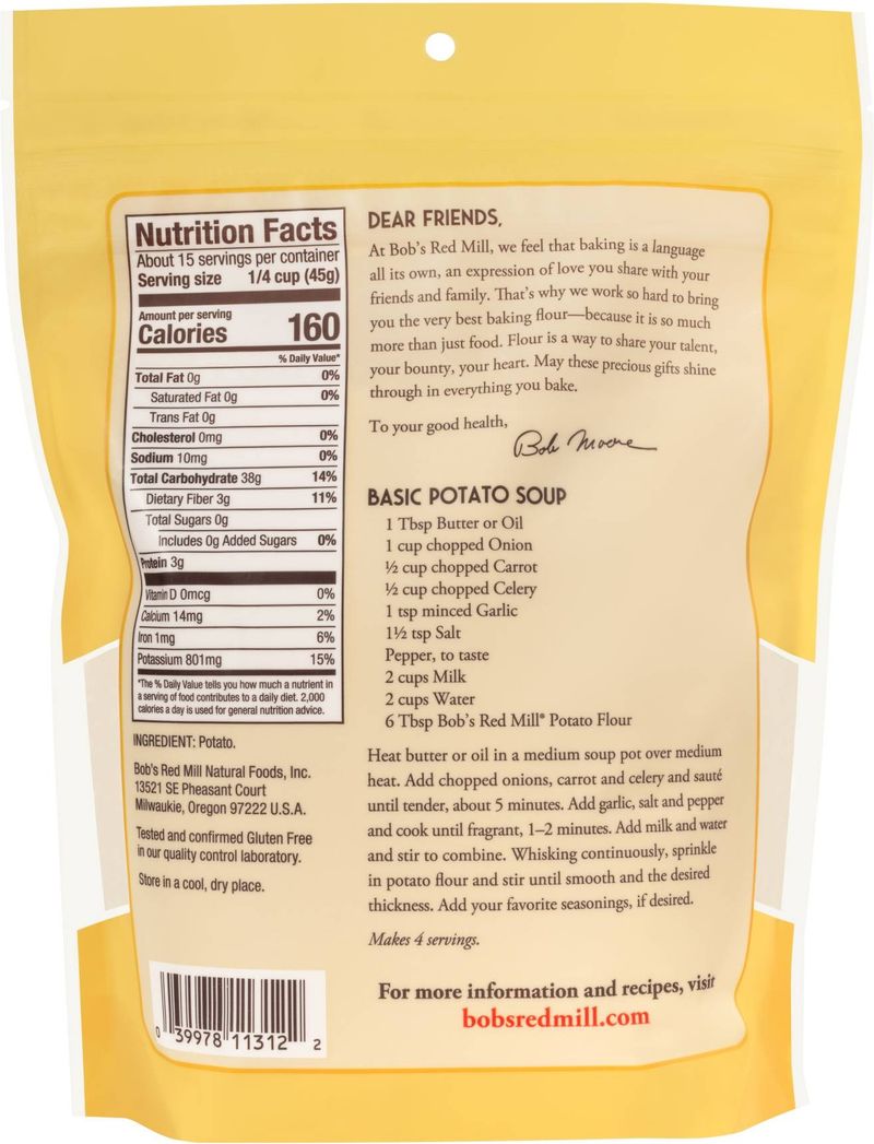 Our POTATO FLOUR 24OZ is a high-quality baking ingredient that adds lightness and moisture to your favorite recipes. This versatile flour is made from 100% potatoes and is gluten-free, making it a great choice for those with dietary restrictions. With a mild potato flavor, it enhances the taste of your baked goods while providing a tender texture.