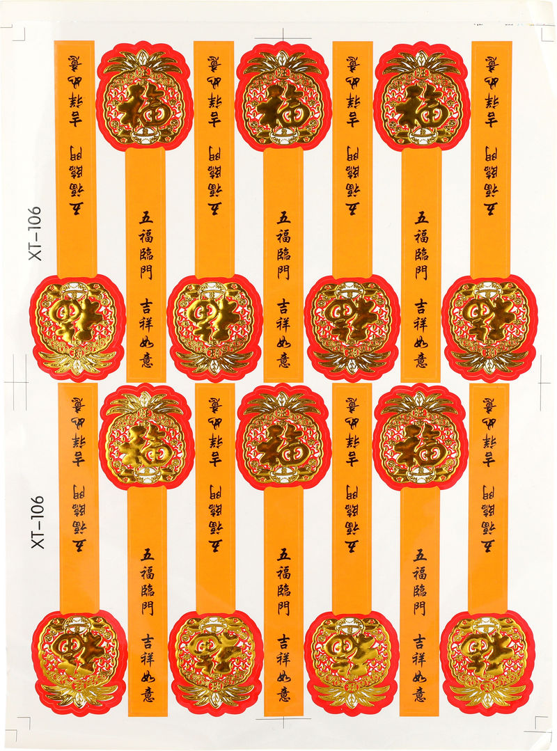 CNY STICKER LONG PINEAPPLE "FU" 35.5X130MM 14PC
