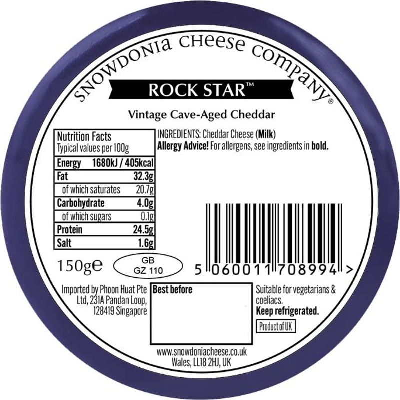 ROCK STAR 150G is an extraordinary cheese product from the Snowdonia Cheese Company. Inspired by the lush greenery of North Wales, this premium cheddar cheese delivers a unique depth of flavor, coupling a sharp tang with exceptional creaminess. Handcrafted by third-generation dairy farmers, every bite encapsulates the authentic taste of the UK countryside. The 150G packaging makes it perfect for personal or family use, promising a memorable culinary experience.