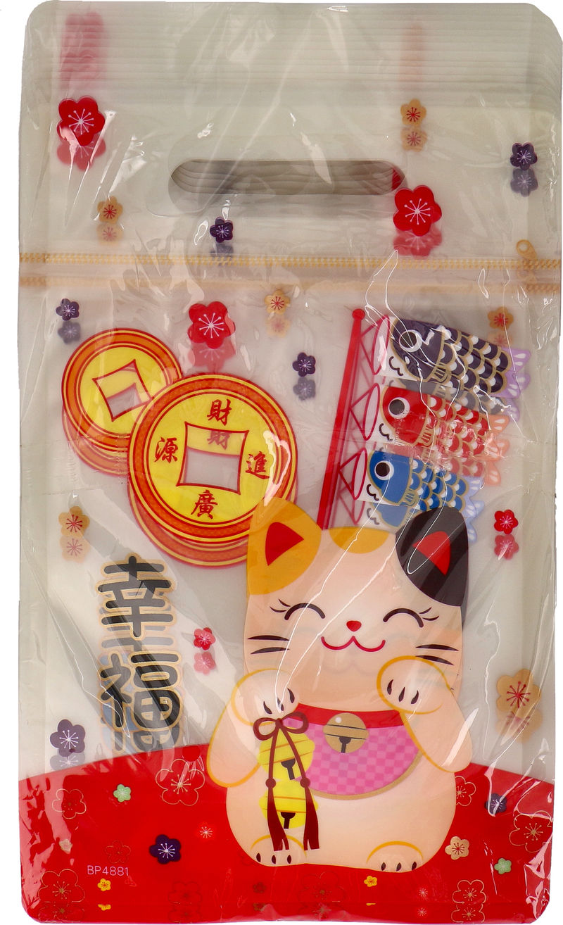 ZIPLOCK BAG LUCKY CAT WHITE 50PC