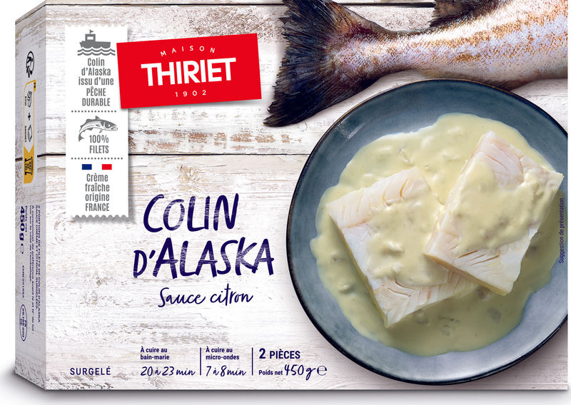 Introducing Maison Thiriet's Alaskan Coley with Lemon Sauce - a scrumptious and decadent dish featuring the delicate, melt-in-your-mouth Alaskan Coley fillets (53.3%) that's been meticulously prepared for your dining pleasure. This dish is a celebration of flavors, combining the richness of French sour cream (14.9%), the subtle sweetness of shallots (2.9%), the tanginess of concentrated lemon juice (0.7%), and the savory notes of various herbs and spices, all bound together in a beautifully crafted lemon sauce that awakens your taste buds. This frozen ready-to-eat meal, nestled in the Vegetable, Pasta, and Ready to Eat Meals category, is perfect for those days when you want a delectable and fuss-free dinner.