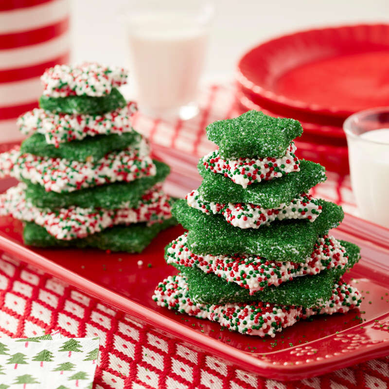 Christmas tree cookies, festive cake toppers, holiday-themed fondant decorations, engaging kids in playdough art, Christmas-themed food platters.