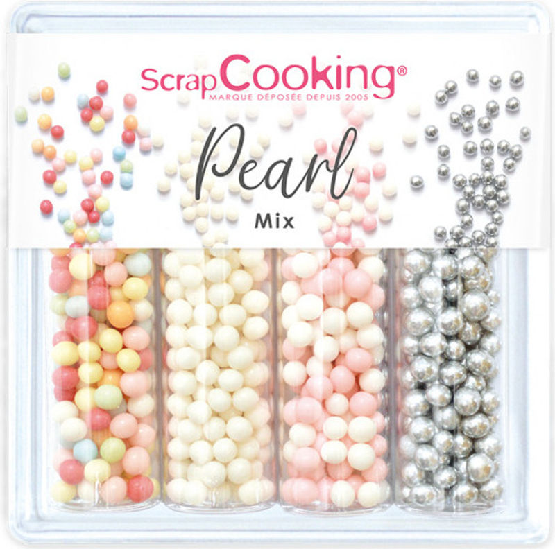 An elegant mix of edible pearls in metallic tones for stylish dessert decoration.How to use:Apply directly to desserts, cakes, or confections.Suggested Recipes:Celebration cakes, truffles, cookies.Ingredients:Sugar, starch, colorants (E171, E172), glazing agent.Country of origin:France