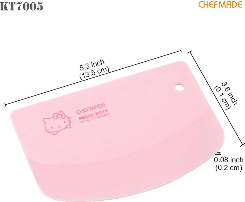 Introduce the fun of baking with the Hello Kitty Dough Scraper! Designed with the adorable Hello Kitty character, this dough scraper is not only a playful addition to your kitchen toolkit but also a practical one. Made of food-grade plastic, it is perfect for handling, cutting, and cleaning dough. Its compact and curved design ensures an easy grip and efficient use. This product is proudly made in China.