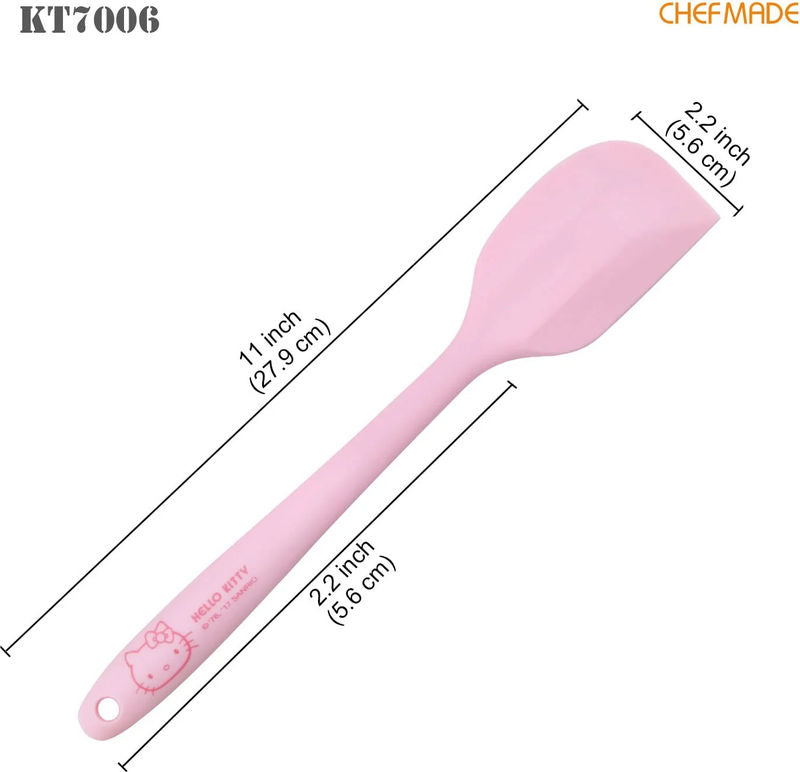 Add a touch of fun to your kitchen with our 11-inch Hello Kitty Silicone Spatula. Made with premium quality, heat-resistant silicone, this spatula is not only charming but also highly functional. The flexible blade is perfect for folding mixtures and scraping bowls, while the sturdy plastic handle ensures a comfortable grip. This Hello Kitty-branded spatula is made in China and is a great addition to any kitchen, making your cooking and baking sessions a delight.