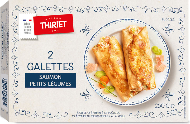To savour Maison Thiriet's Salmon and Vegetable Galettes, preheat your oven to 180°C (Thermostat 6) and place the frozen galettes on a baking tray. Bake for around 20-25 minutes, flipping once halfway through until both sides are golden brown. Serve hot, as a standalone meal or as a side dish to meat or fish entrées. Great for both lunch and dinner, these galettes will bring a touch of French gastronomy to your table.