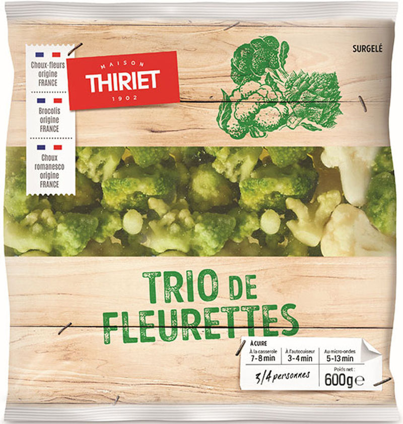 Introducing the Trio of Flowers by Maison Thiriet, a delightful combination of cauliflower, broccoli, and romanesco florets that bring an exquisite touch of gourmet France to your plate. Each vegetable in this trio is flash-frozen at the peak of freshness, preserving not only their vibrant colors and textures but also their nutrients and flavor. The Trio of Flowers is not just a feast for the eyes; it's a nutritious, wholesome, and versatile ingredient that can effortlessly enhance any meal.