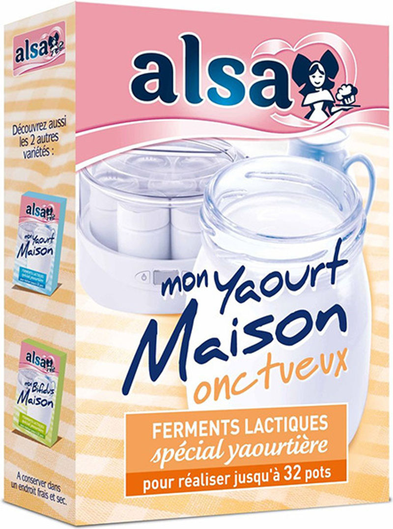 Experience the joy of making your homemade yogurt with Alsa's Mon Yaourt Maison Onctueux - Lactic Acid Bacteria For Yogurt product. This superior quality yogurt culture is a must-have for all at-home food enthusiasts who appreciate the art of making their yogurt. It contains lyophilized lactic acid bacteria (Lactobacillus bulgaricus and Streptococcus thermophilus) on maltodextrin, specially blended to provide an exceptionally creamy and smooth texture to your homemade yogurt. Indulge in the health benefits and personalized flavors of homemade yogurt, knowing you're using a premium, trusted product.