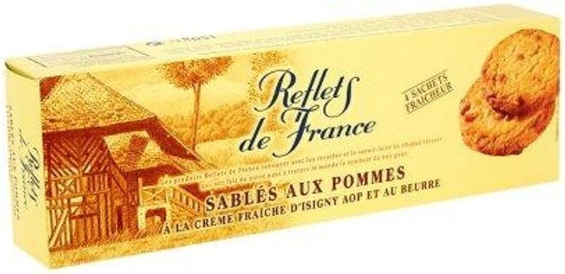 Savor the delightful fusion of buttery shortbread and tangy apple in our Apple Shortbread Biscuits from Reflets de France. Crafted from high-quality ingredients like wheat flour, cream of Isigny AOP, and a unique addition of potato cubes, these biscuits are a tantalizing treat that perfectly captures the essence of French cuisine. Each biscuit bursts with a sweet and slightly tart apple flavor, enhanced by 25% butter content that gives it an irresistible rich and creamy taste. Moreover, the use of powdered egg yolk and skim milk powder add a tender crumb to these shortbread biscuits, making them an ideal companion for your tea or coffee.