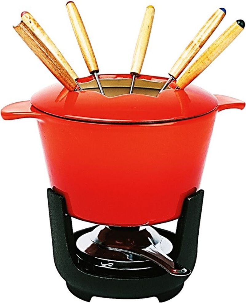 Create a warm, convivial atmosphere at your next dinner party with the Crealys Cast Iron Fondue Set. Built to cater up to 6 people, this sturdy, high-quality cast iron set ensures even heating for a perfectly melted cheese or chocolate fondue. Its traditional design adds a touch of elegance to your table, while the durable iron material ensures longevity. Each individual has their own color coded fork, preventing mix ups. Whether you're hosting a family gathering or an intimate evening with friends, this fondue set is sure to bring a touch of sophistication and fun to your event.