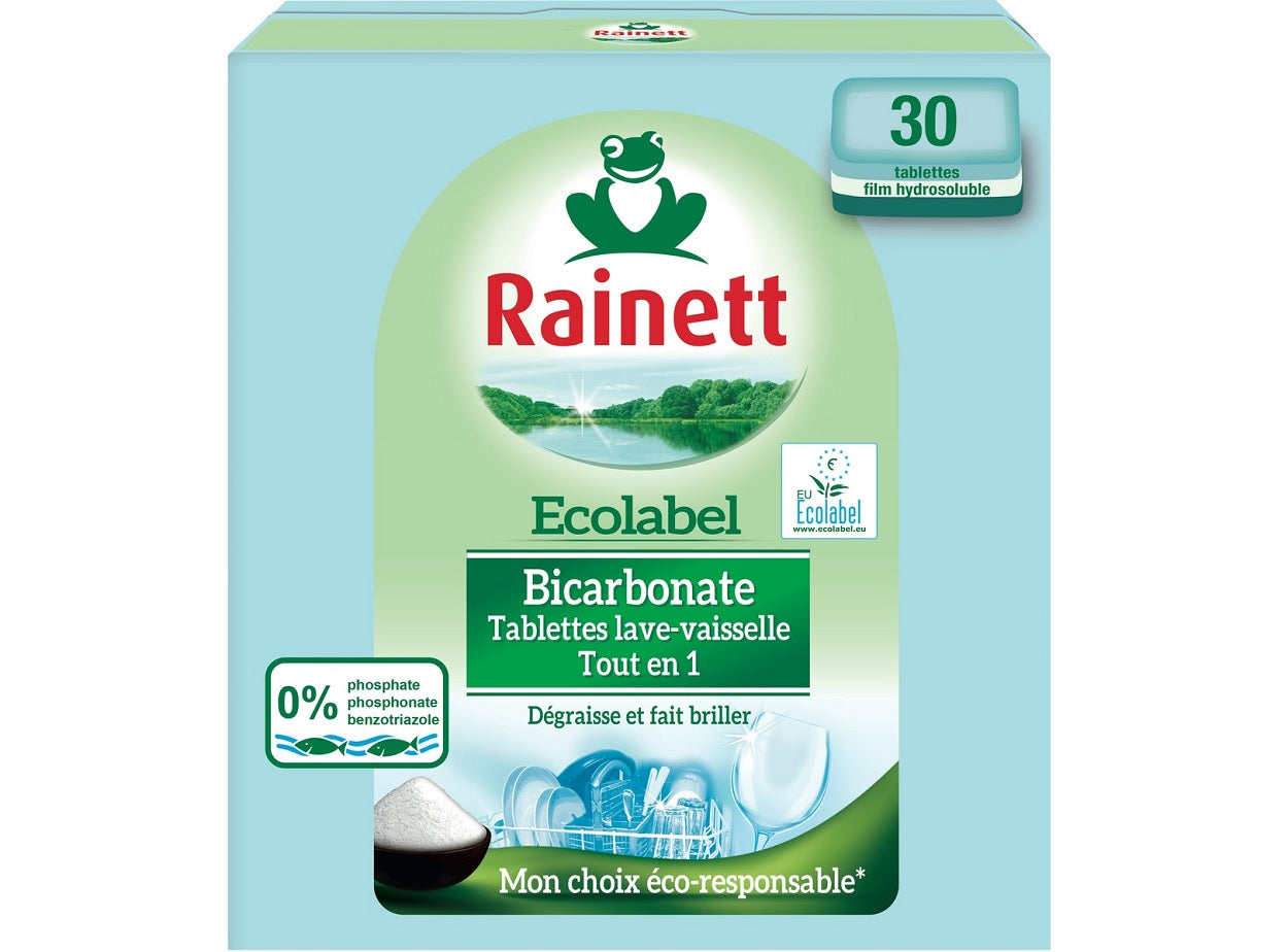 Experience a new level of cleanliness and environmental consciousness with the Rainett Ecolabel Bicarbonate Dishwasher Tablets. Meticulously crafted to provide a powerful clean while respecting the environment, Rainett has revolutionized home cleaning essentials. Each tablet is imbued with bicarbonate, a natural ingredient known for its excellent cleaning properties, ensuring a spotlessly clean and fresh-smelling kitchenware every time. It's not just about maintaining a clean kitchen, but also about contributing to a healthier planet.
