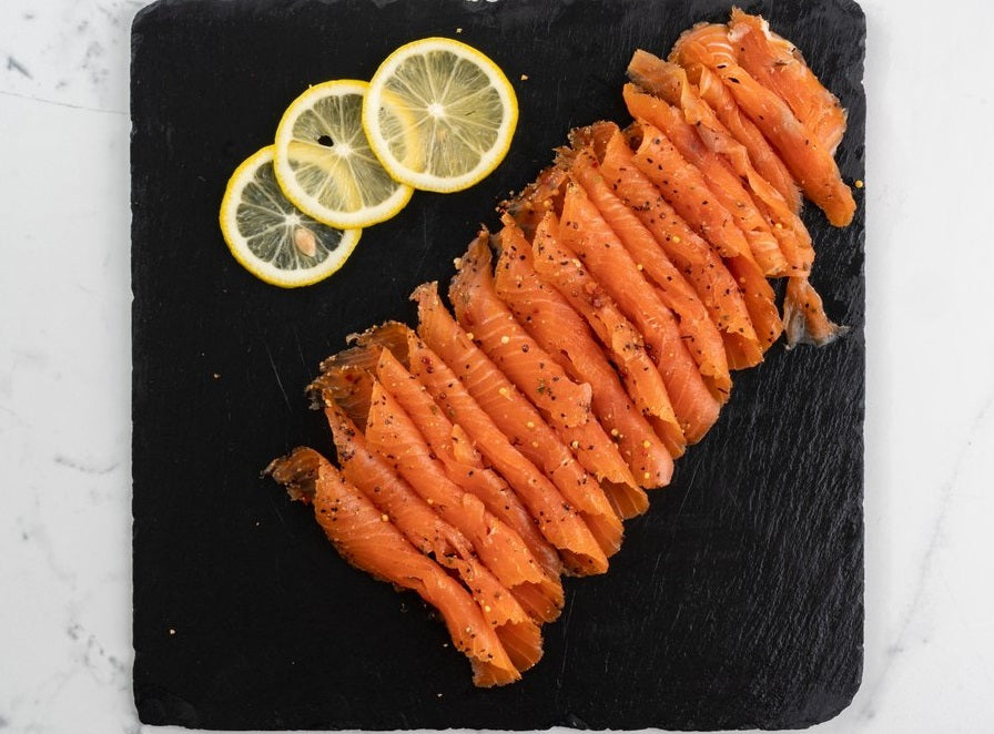 Indulge in the rich, smoky flavors of the Fassler Gourmet Black Pepper Presliced Smoked Salmon. This exquisite delicacy from our premium fish shop brings the finest quality smoked salmon to your dining table. Each slice is perfectly seasoned with black pepper, adding a subtle spice hit that perfectly cuts through the salty-smoky goodness of the salmon. Whether you're planning a sophisticated dinner party or desire an elegant evening meal, this smoked salmon is an excellent choice.