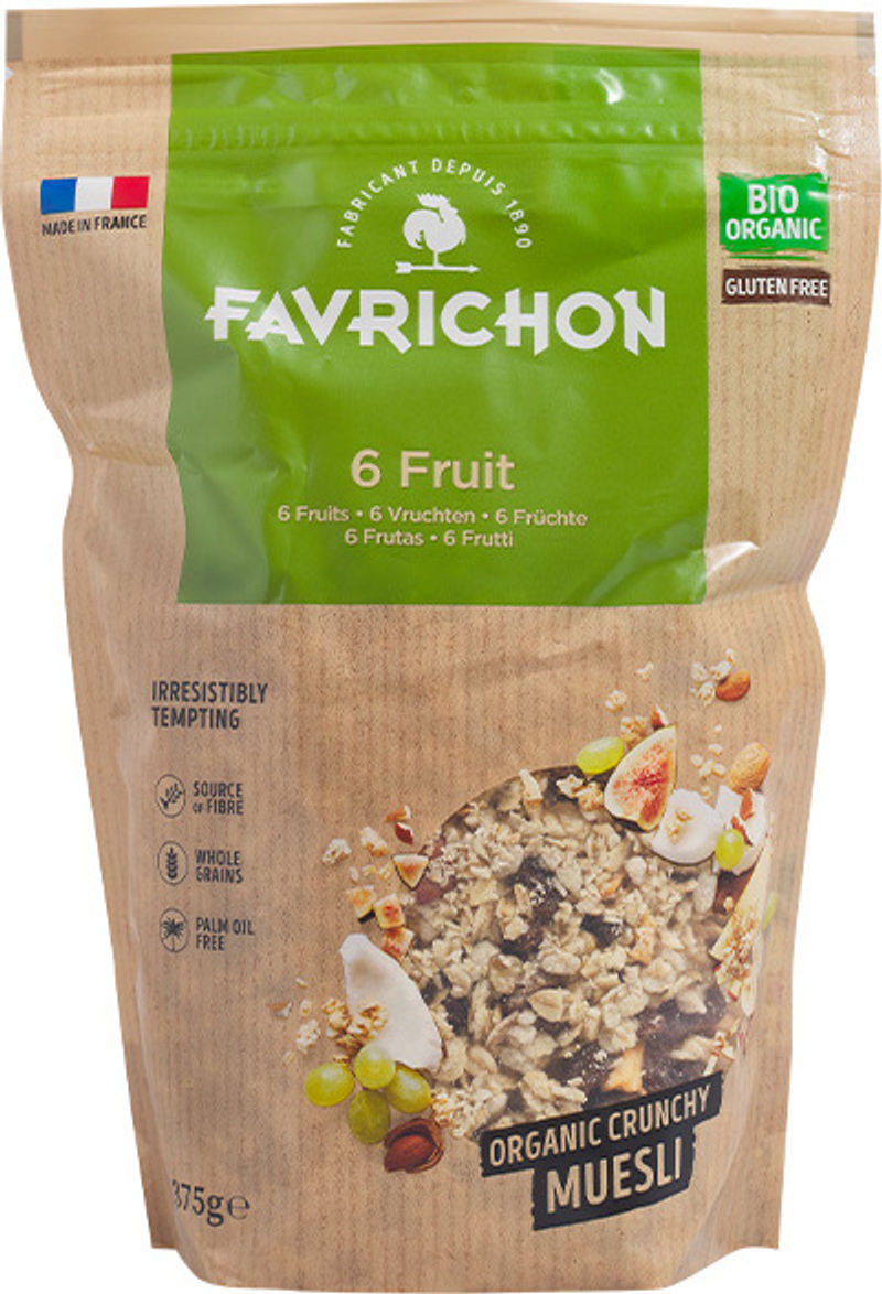 Introduce a delightful start to your day with the Organic 6 Fruits Muesli from Favrichon. This all-natural muesli is a delicious blend of cereals and fruits including grapes, apples, figs, bananas, slivered almonds, and a hint of grated coconut. Favrichon's commitment to quality ensures that their muesli is made from 100% organic ingredients, offering a wholesome, nutrient-rich breakfast option that is not only good for you but also kind to our planet.