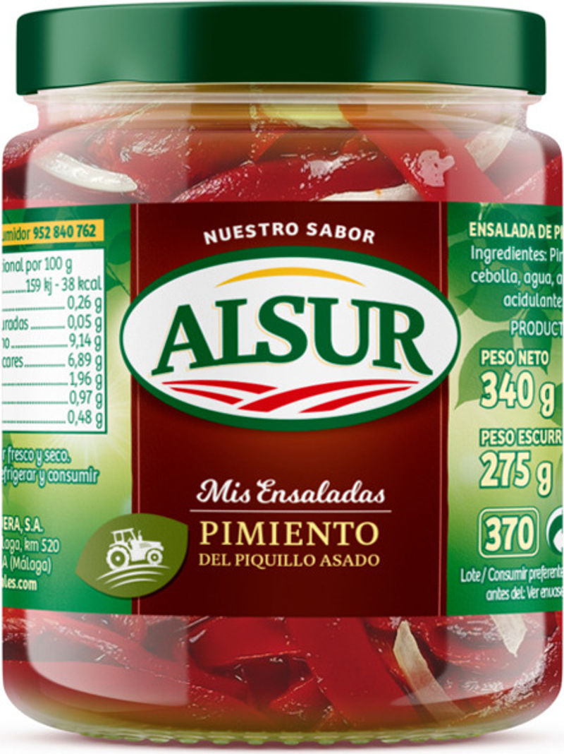 Experience the authentic taste of Spain with Alsur's Ensalada de Pimientos del Piquillo Asados. These luscious, roasted Piquillo peppers are combined with onions and a tantalizing mix of water, sugar, salt, vinegar and citric acid, delivering a robust burst of flavor in each bite. Piquillo peppers are known for their sweet and slightly spicy flavor and are an essential part of the Spanish culinary tradition. They are preserved in this hearty salad to maintain their freshness and quality, so you can enjoy their unique flavor all year round. Perfect for health-conscious food lovers, this ready-to-eat salad offers a convenient and nutritious option for a quick meal or snack.