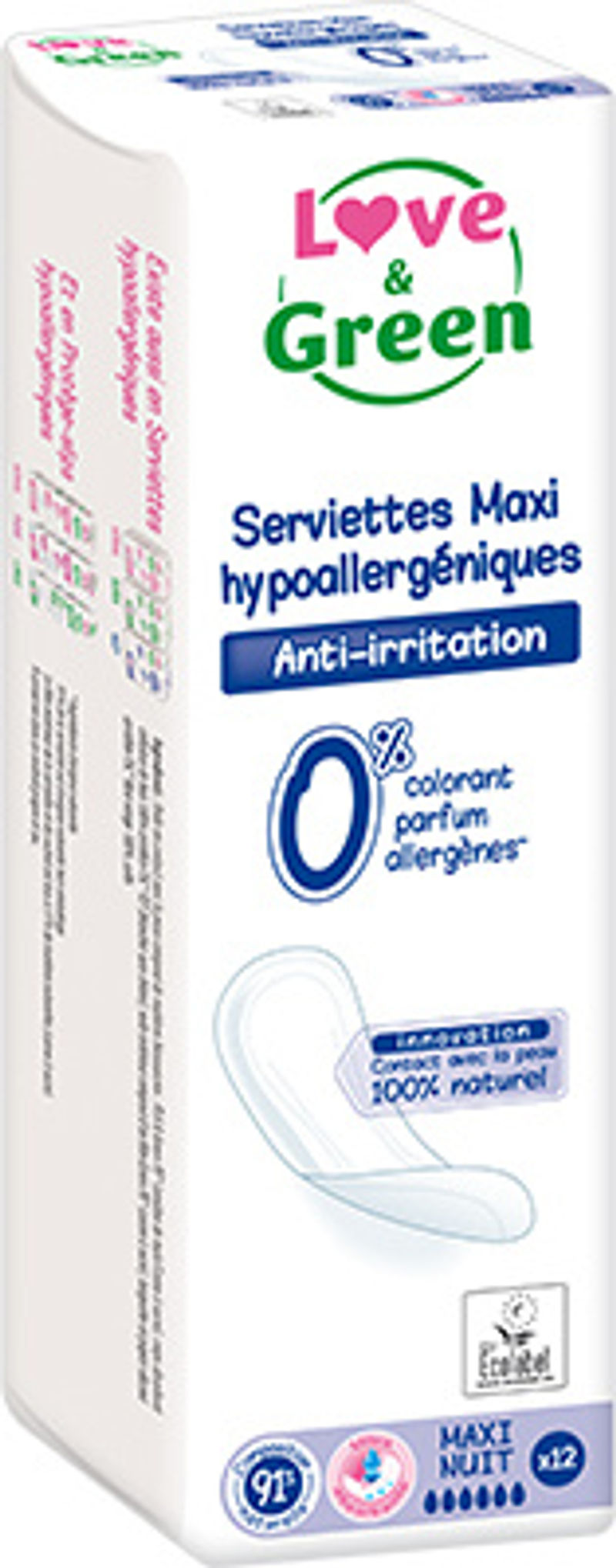 SERVIETTES MAXI NUIT ECOLABELLISEES & HYPOALLERGENIQUES
