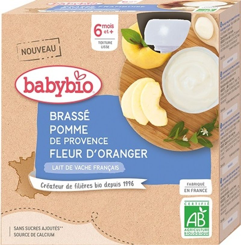 Introducing the Organic Provence Apple and Orange Blossom Yogurt from Babybio, a delightful French treat for your little ones. Made with 63% fermented milk from the lush pastures of France, 28% Provence apples, cassava starch, orange blossom extract, and a dash of concentrated lemon juice from Spain, this yogurt is both delicious and nutritious. Every spoonful promises a perfect blend of creamy yogurt and sun-ripened fruits, all sourced from organic farming. This yogurt not only satisfies your baby's taste buds but also offers essential nutrients for their growing needs.